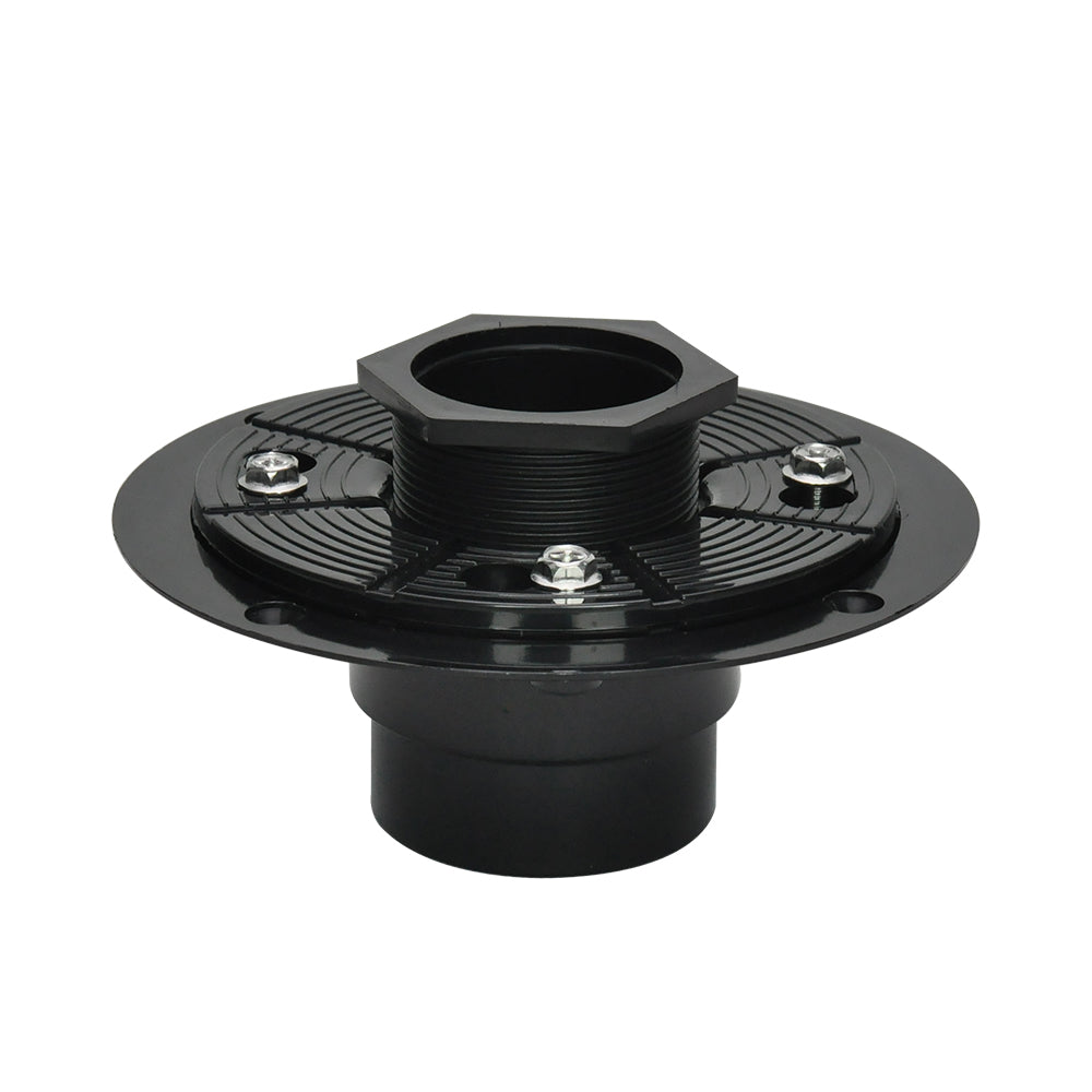 2-inch ABS Shower Drain Base Flange with Threaded Adaptor—perfect for both Shower and Linear Drains. Crafted from durable ABS, it suits vinyl shower liners or hot-mop preferences. Connecting drains is a breeze—link outlets, secure to the base. Adjustable height and compatibility with 2 or 3 piping offer flexibility. It includes a threaded adaptor compatible with most shower drains, all in compliance with UPC and ASME standards. Easy installation, durable performance.